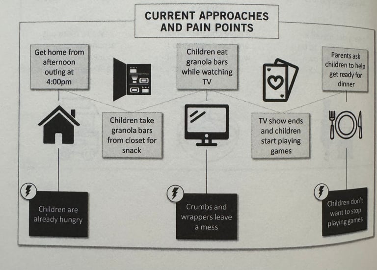 Current approaches are the range of activities that collectively represent a customer's way of doing something. Pain points--a breeding ground for innovation--are the areas of difficulty, frustration, or inefficiency along the way.