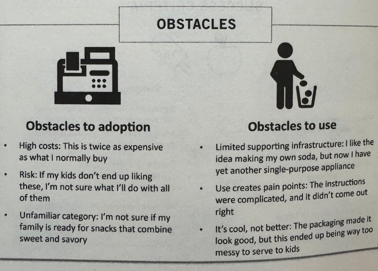 Obstacles to adoption are hurdles that limit a consumer's willingness to buy an offering.